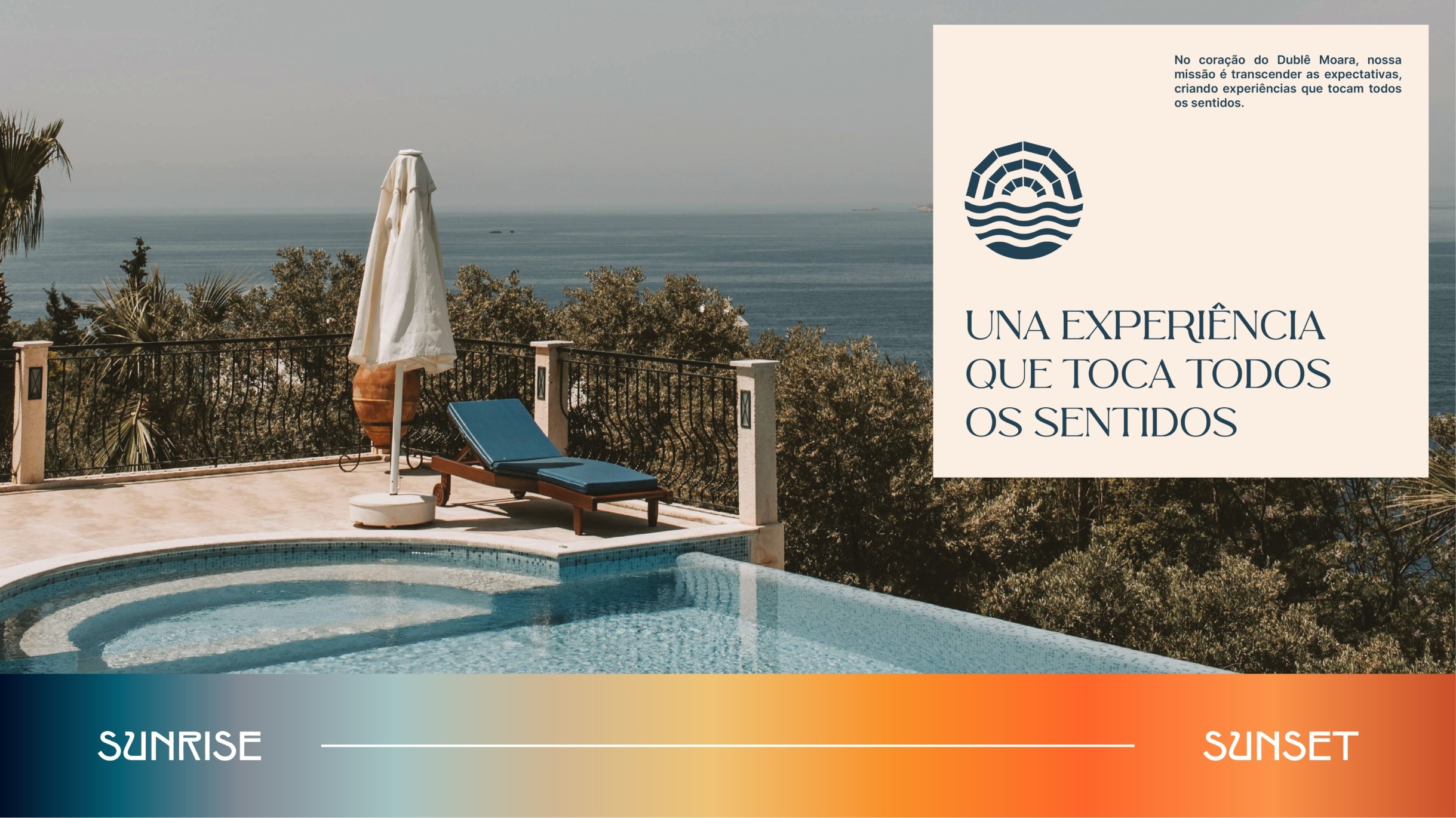 Un Hotel Sinestésico. La solución creativa para Moara Hotels se inspira en la luz única de Porto de Galinhas, creando un hotel experencial basado en un set de experiecias y una identidad que integra aromas, texturas y sonidos locales. Cada unidad ofrece una experiencia inmersiva que conecta a los huéspedes con la naturaleza y la cultura del destino.
